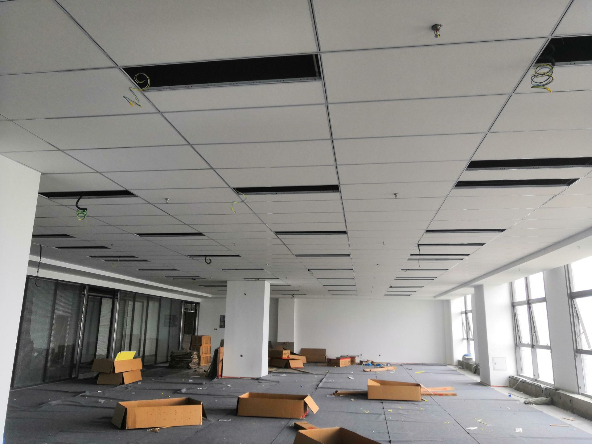 合肥同智机电股份有限公司吸音项目施工中玻纤吸音板能有效控制和调整室内的混响时间,降低噪声,改善音质.玻纤吸声天花...